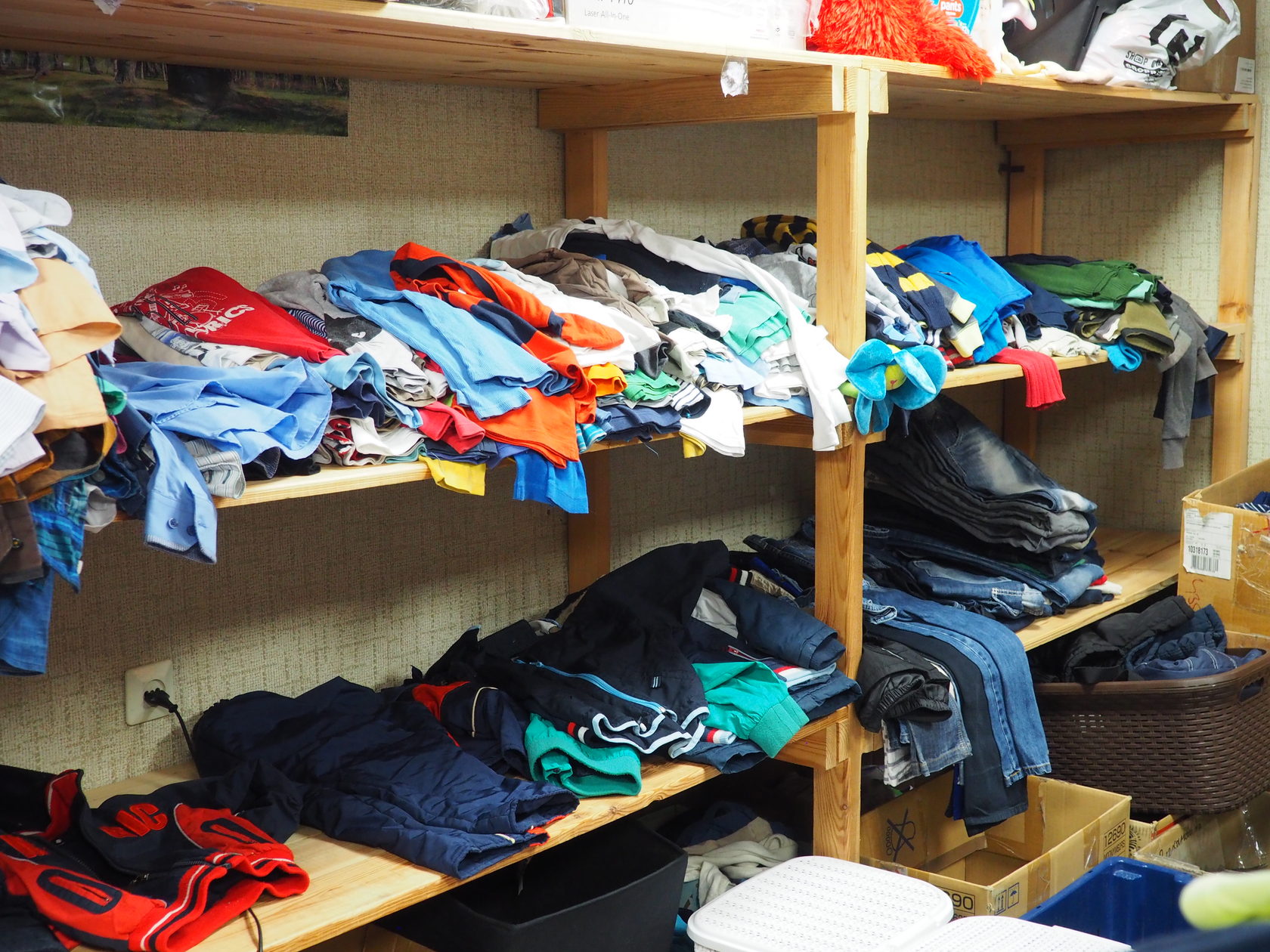 Перед началом учебного года в Детский фонд ежедневно приходят нуждающиеся семьи за вещевой помощью. Только за эту неделю мы подобрали вещи для 11 детей из шести семей! И вся следующая неделя расписана. Мы справляемся, одевая девочек, а вот полки с вещами для мальчиков совсем опустели :(